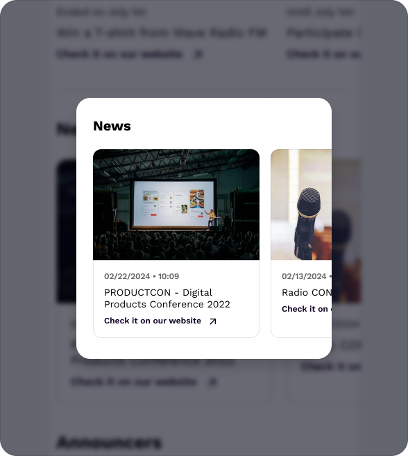 To ensure your radio app's visual identity, we use the same layout across all versions: iOS, Android, and Web App (PWA). However, due to technical limitations specific to each platform, some features may not be available: